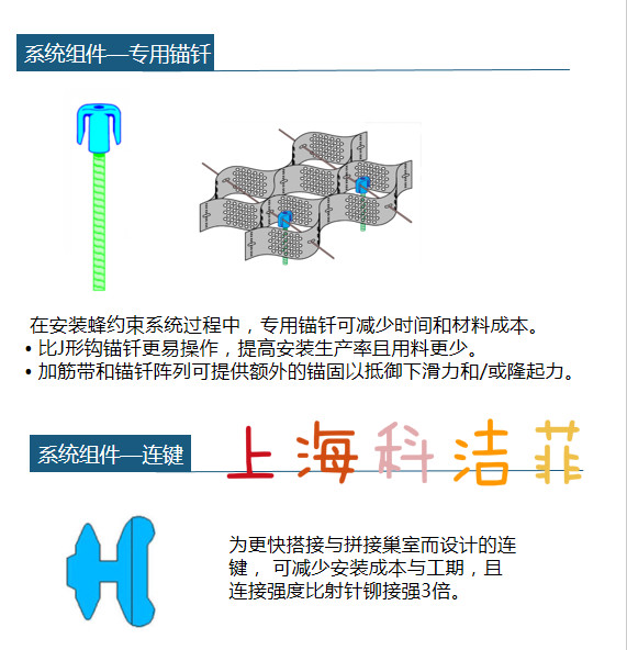 在安裝蜂巢約束系統(tǒng)過程中,專用錨釬可減少時間和材料成本。